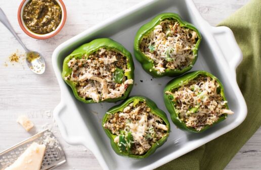 This recipe combines our Success® Tri-Color Quinoa, shredded chicken, pesto, mozzarella, Parmesan and bell peppers into one satisfying, easy dish.