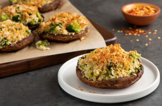 Savory, creamy Blue Cheese Stuffed Mushrooms made with Success® Brown Rice, red peppers, butter and heavy cream are a crowd-pleasing way to start any party!