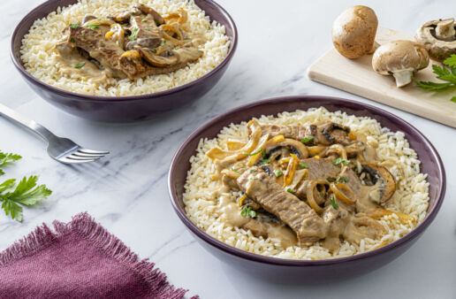 You’ll love this fast and easy Beef & Broccoli Stir-Fry made with brown rice, sirloin steak, broccoli florets, ginger, soy sauce and sliced mushrooms.