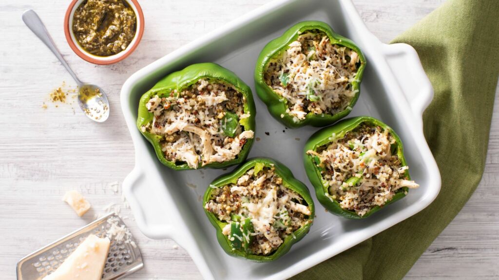 Success® boil-in-bag quinoa, tender bites of chicken and a generous pour of pesto make a hearty filling for roasted peppers in this comforting dish. Ideal for weeknights or meal prep, this tasty combo is sure to satisfy everyone at your table.